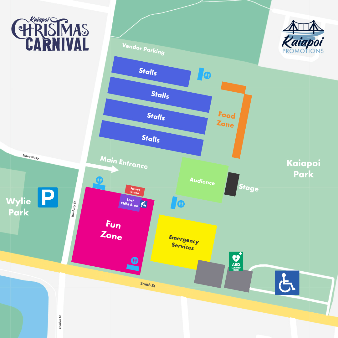 There is an on-site first aid provided by Kaiapoi Fire Brigade. In case of emergency, the first aid station is located near the main stage.